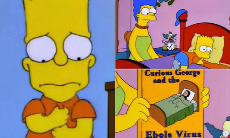 Это было в 9-й серии 3-го сезона, в сцене из «Саксофона Лизы». Мардж предложила больному Барту прочитать книгу, которая называлась «Любопытный Джордж и вирус Эбола». Этот вирус не был широко распространен в 90-х годах, но попал в заголовки газет несколько лет спустя.