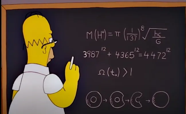 Гомер Симпсон стал изобретателем и был показан перед сложным уравнением на доске.